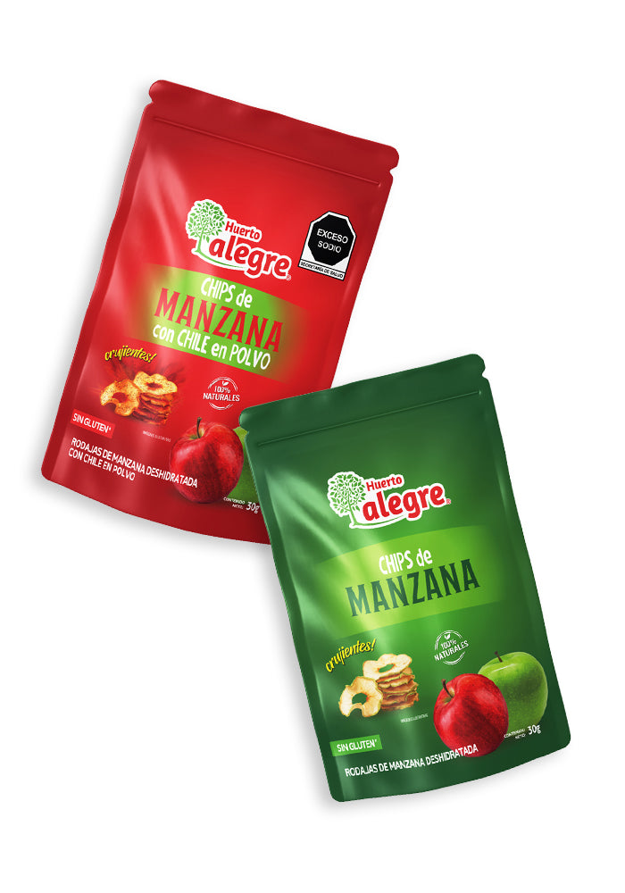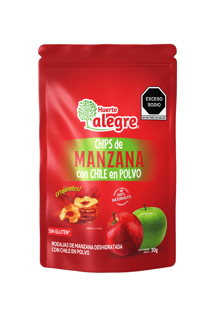 Caja con 30 Bolsas de 30 grs. de Mix de Chips de Manzana con Chile en Polvo y Sabor Natural