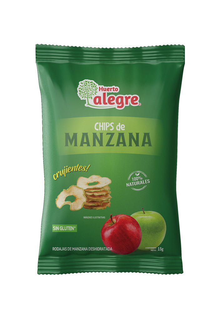 Chips crujientes de Manzana deshidratada 100% natural sin colorantes o saborizantes naturales.