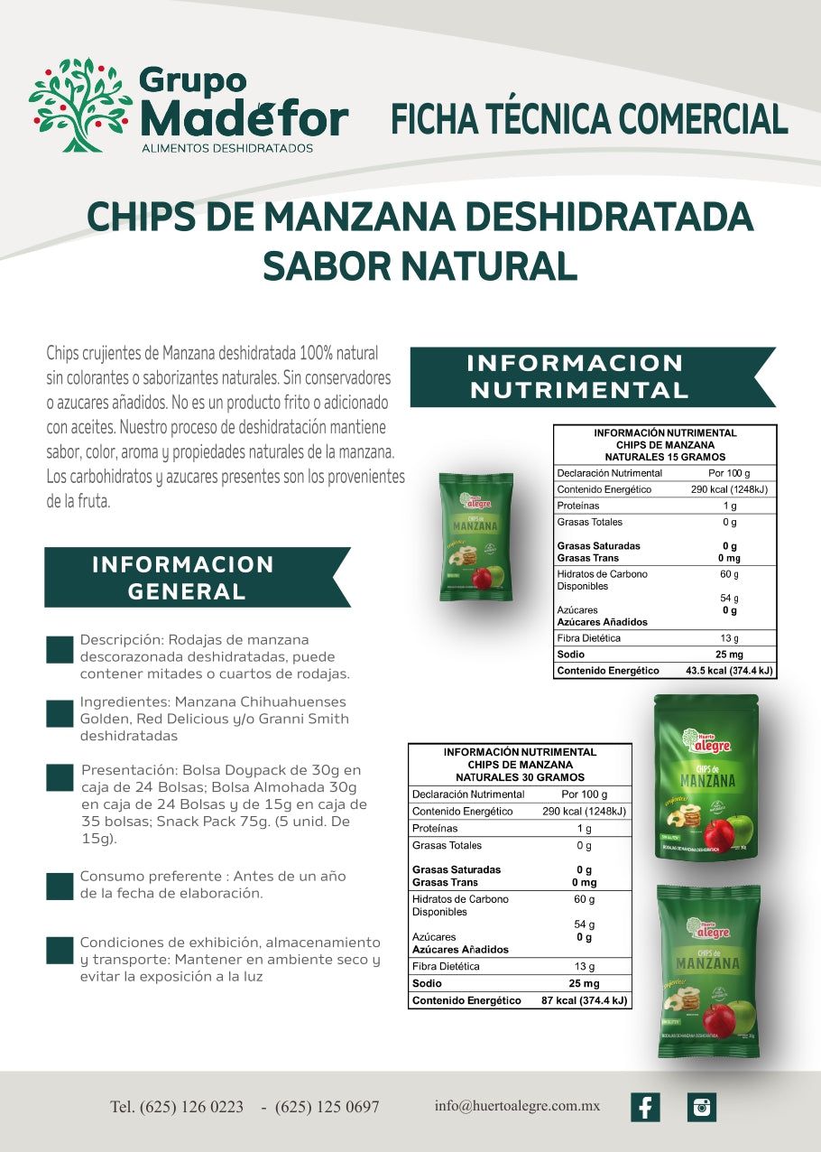 Caja con 36 Bolsas de 15 grs. de Chips de Manzana Sabor Natural